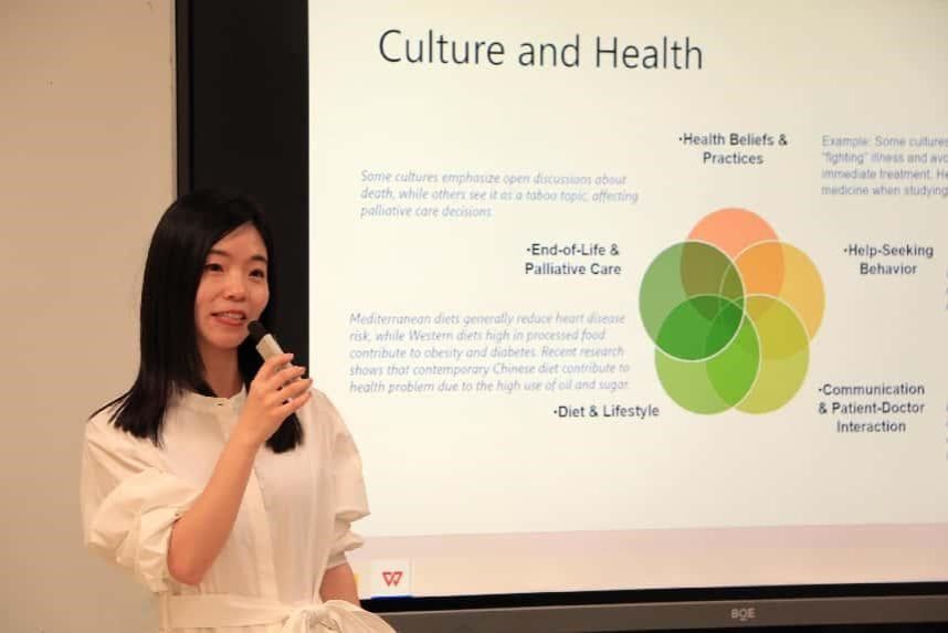 刘佳博士介绍了从语言和国际新闻与传播领域转向医学教育的职业与学术历程。通过多个案例探讨文化对健康观念的影响。在健康与国际关系方面,刘佳博士以中国的“健康丝绸之路”(HSR)为例,说明全球健康合作如何通过医疗援助、疫情应对和基础设施发展促进外交关系。同时她分析了疾病防治中的国际合作与文化冲突。当谈到跨学科研究与实践时,刘佳博士强调了语言在科研工作中的重要性,并提出跨学科研究的潜在方向,鼓励员工思考结合不同领域的课题。