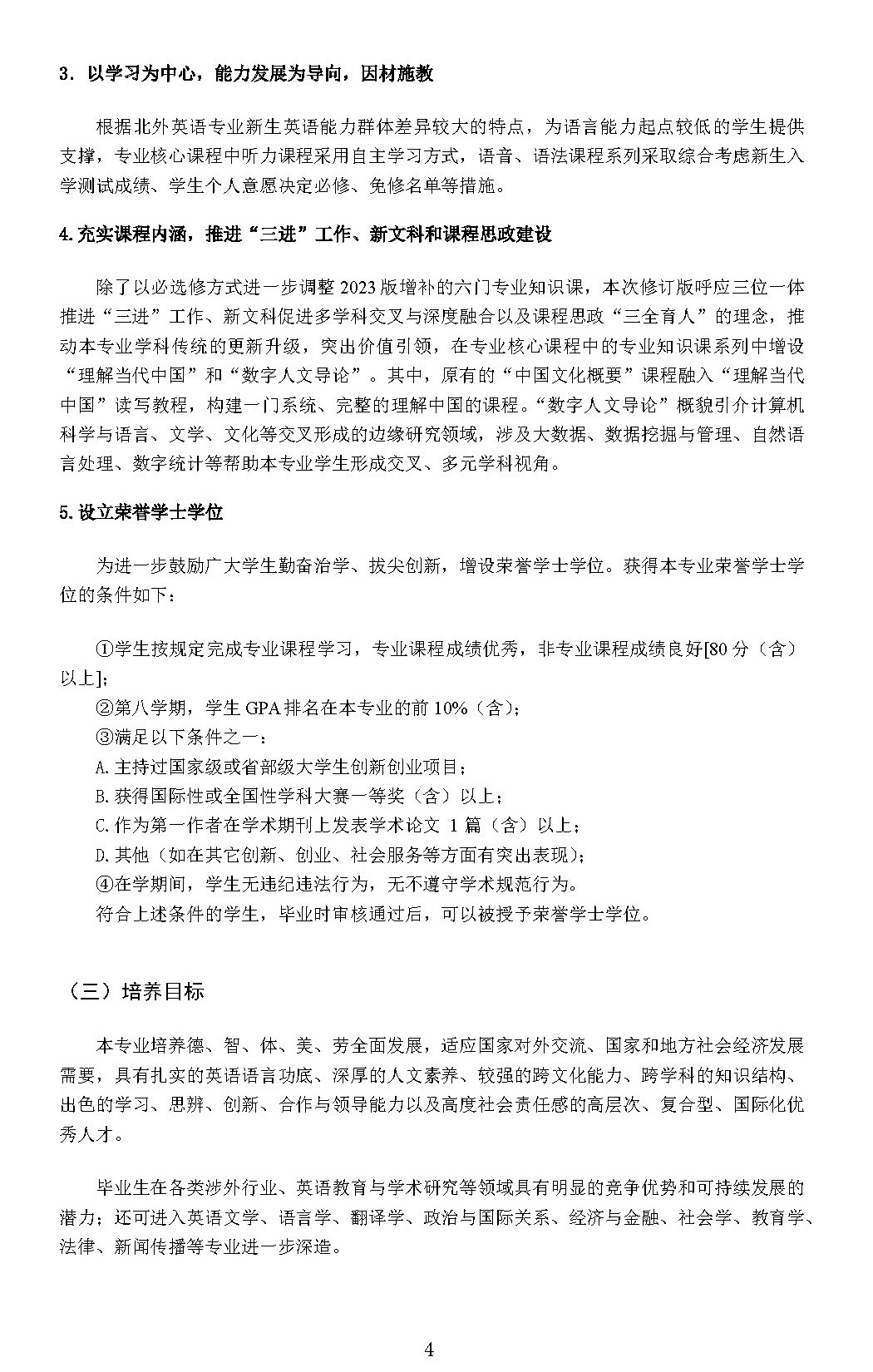 beats365唯一官方网站英语(国别与区域研究)专业本科培养方案(2024)