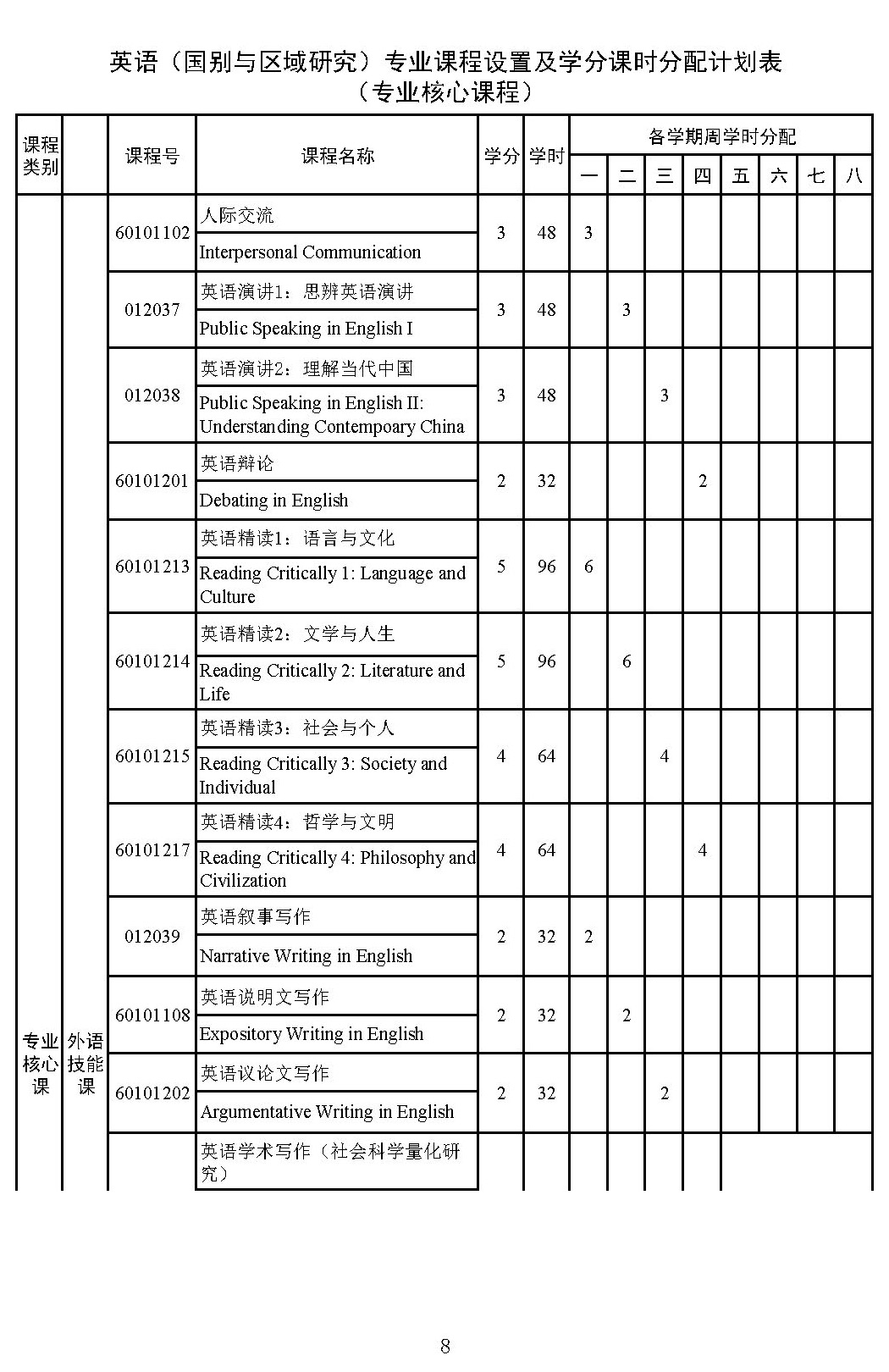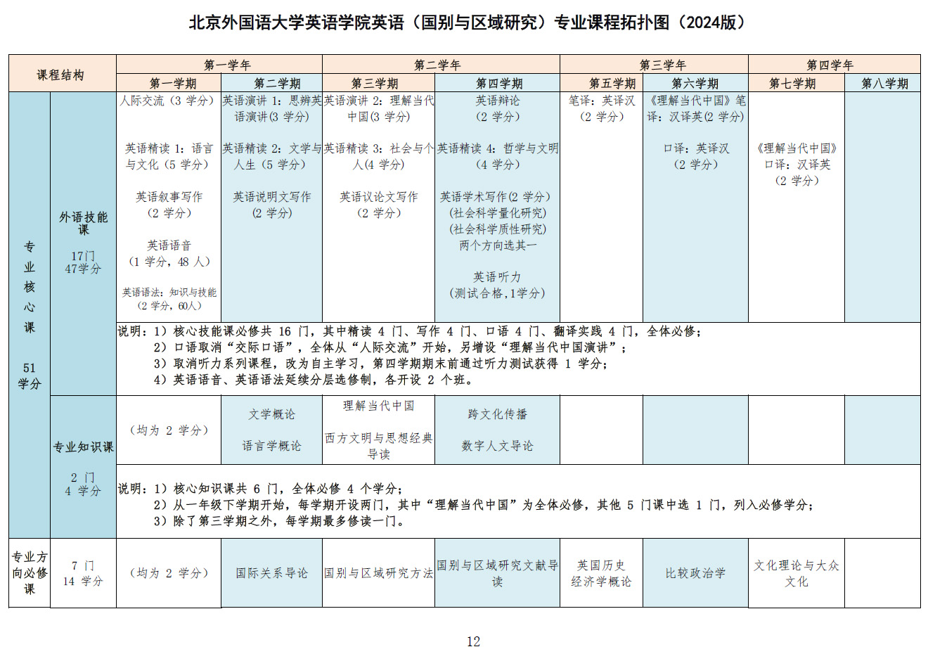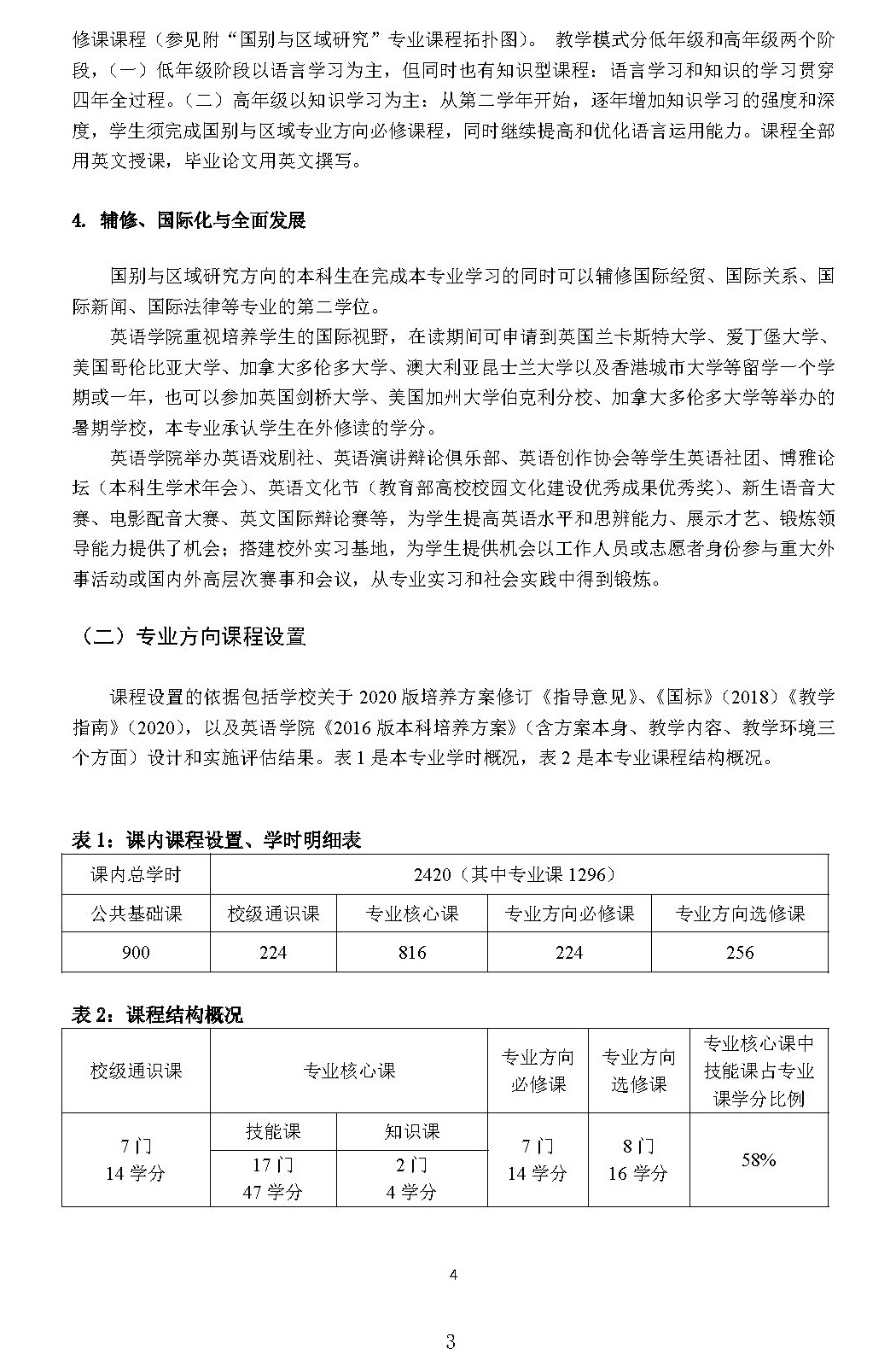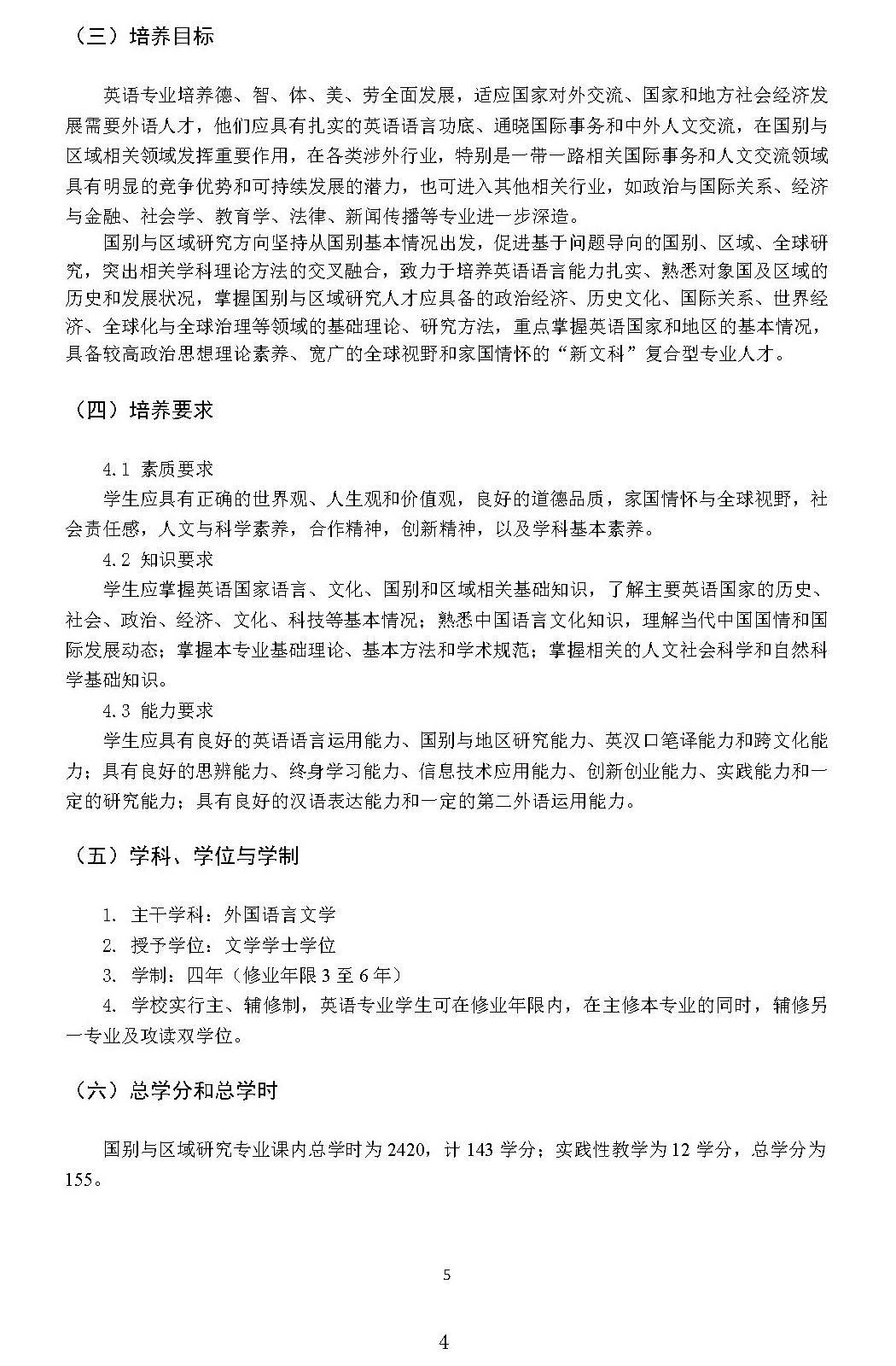beats365唯一官方网站英语(国别与区域研究)专业本科培养方案(2024)