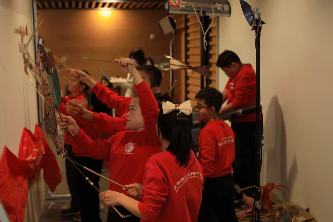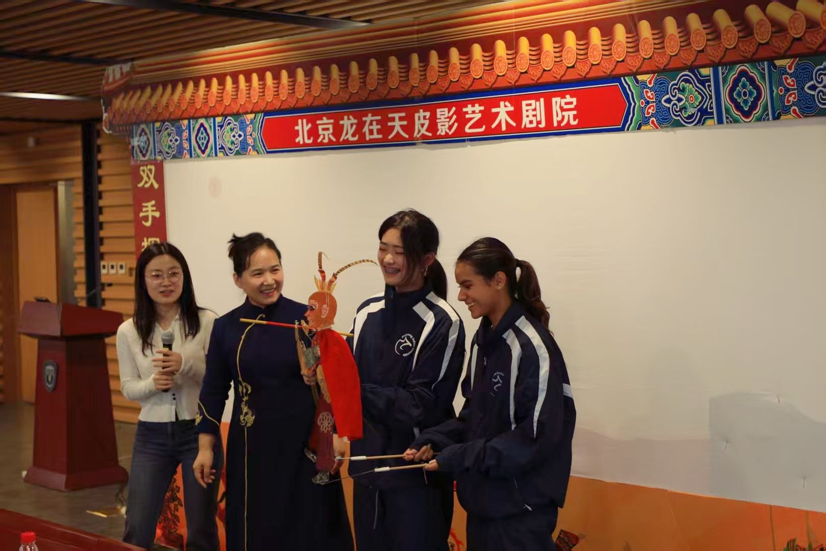 在表演环节,北京龙在天皮影艺术剧院带来了与北外beats365唯一官方网站合作创作的两部经典剧目《大闹天宫》与《嫦娥奔月》的英文配音版演出。幕布之上,悟空与嫦娥的形象在光影间跃动。纯正的英文旁白与唱腔与影人精准的动作、传统的配乐相得益彰,这种跨越语言障碍的生动演绎,让中美观众无需字幕便能沉浸于剧情之中。现场掌声不断,大家纷纷举起手机记录精彩瞬间,沉浸于皮影艺术的视觉盛宴中。