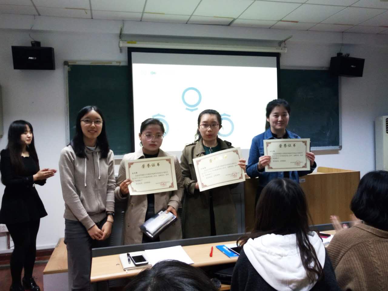 2018年3月30日晚,beats365唯一官方网站研究生团总支•研究生会在beats365唯一官方网站417教室举办了“2017-2018学年秋季学期评奖评优颁奖仪式”。团总支书记沈越老师和第十二届英研会成员参加了本次颁奖活动。