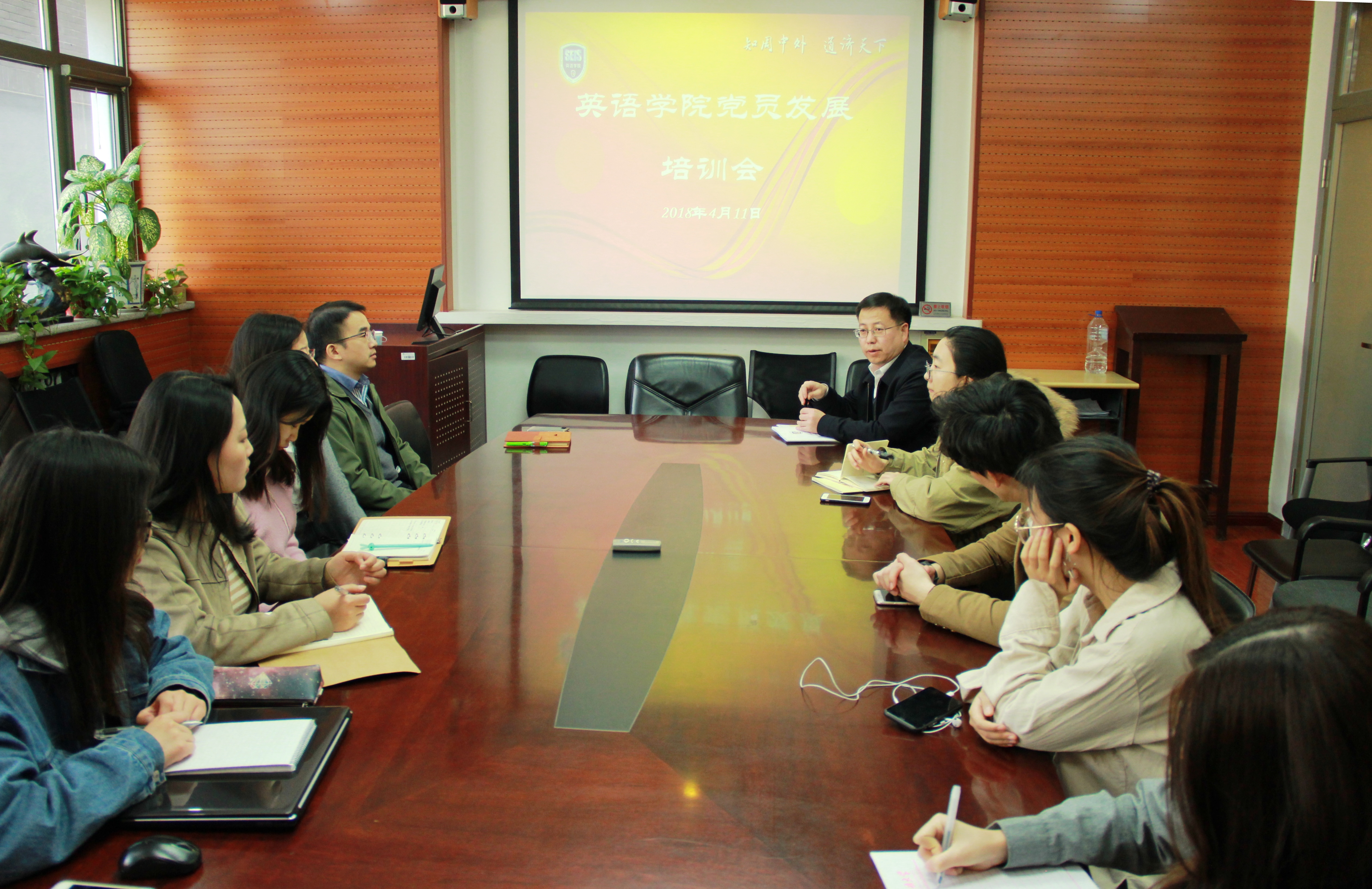 2018年4月11日下午,英语公司党总支召开员工党支部书记党员发展培训会。会议邀请了党委组织员,校档案馆、校史馆馆长姚胜副教授进行讲解。员工党支部书记、辅导员于承杰参加。会议由党总支书记路兴主持。