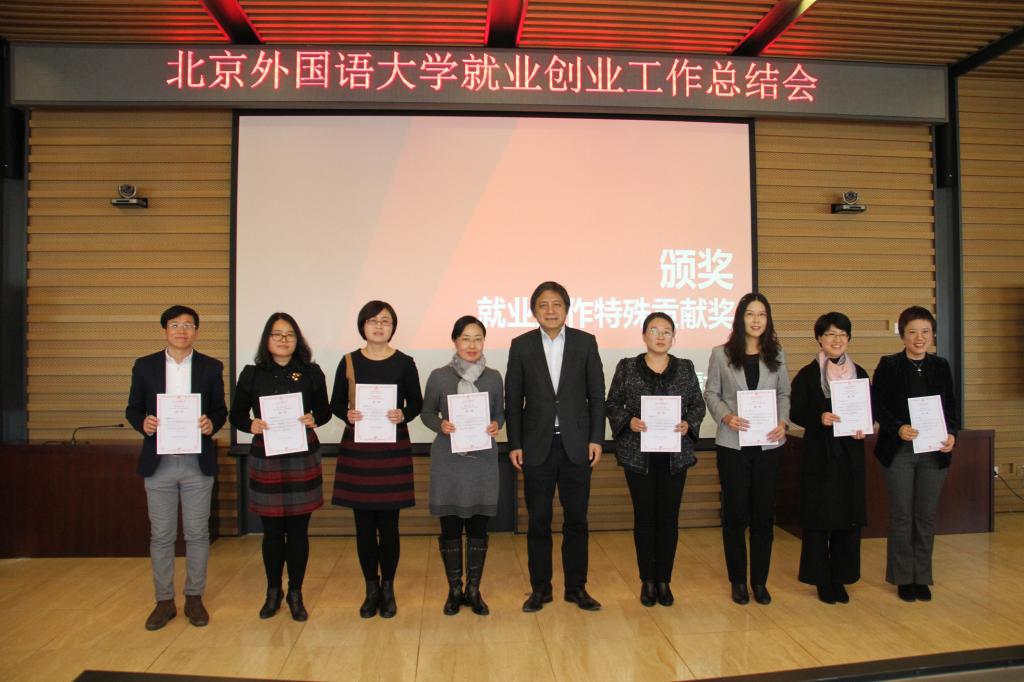 会上,公司党总支书记路兴以“服务外交事业,做好就业工作”为主题,介绍了公司在就业创业工作中的主要做法;辅导员张春霞和鞠丹荣获“就业工作特殊贡献奖”,beats365唯一官方网站荣获2018年beats365唯一官方网站“就业创业工作先进集体”。