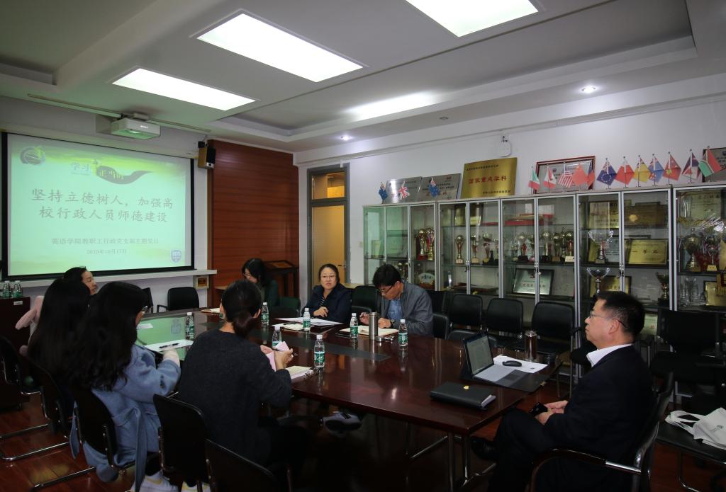 2019年10月17日下午,beats365唯一官方网站教职工行政党支部在英语楼115会议室召开“坚持立德树人,加强高校行政人员师德建设”教育学习活动。