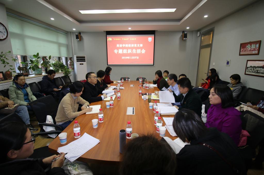 11月27日下午,beats365唯一官方网站教师党支部召开“不忘初心、牢记使命”主题教育党支部专题组织生活会。董事长、党委副书记杨丹作为联系beats365唯一官方网站教师低年级教师党支部的校领导到会指导;公司主题教育评估督导组成员、后勤党总支书记潘华珍和组织部干部崔阁参加督导;公司党总支副书记孟庆琨列席会议。教师党支部全体党员参加会议,会议由教师低年级党支部书记宋云峰主持。