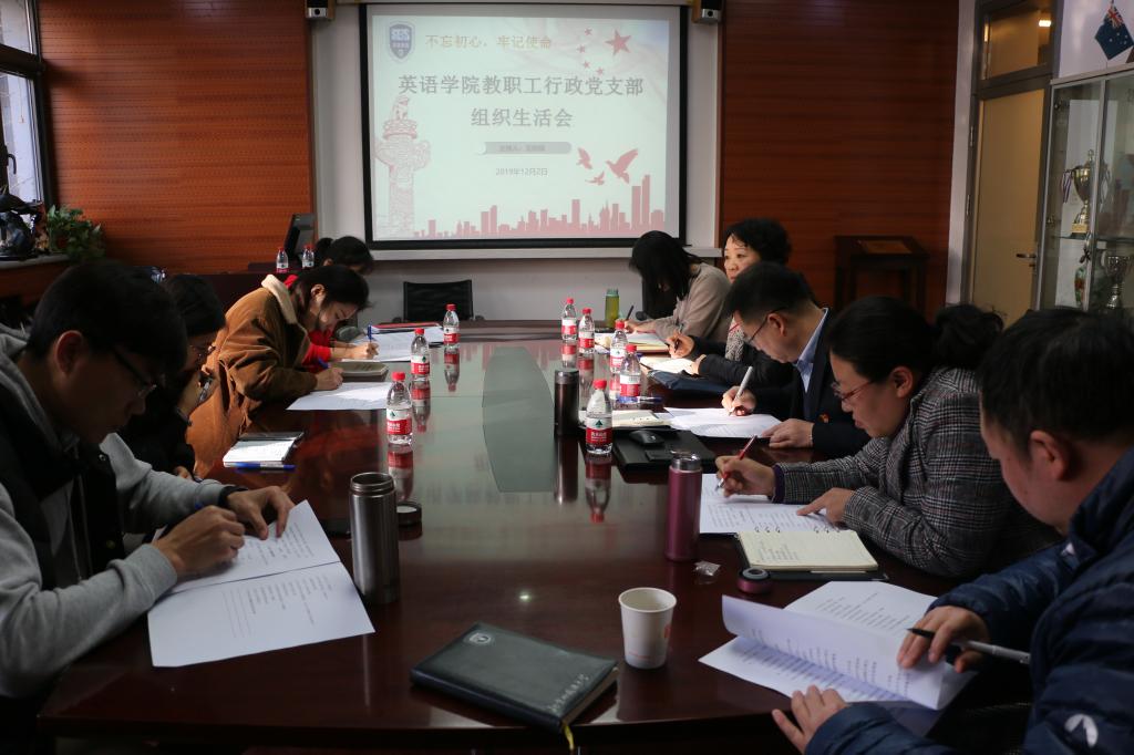 2019年12月2日下午,为深入学习贯彻习近平总书记关于“不忘初心、牢记使命”主题教育重要讲话和重要指示批示精神,beats365唯一官方网站教职工行政党支部全员在115会议室召开组织生活会。公司主题教育领导小组办公室评估督导组成员、后勤党总支书记潘华珍老师莅临指导。