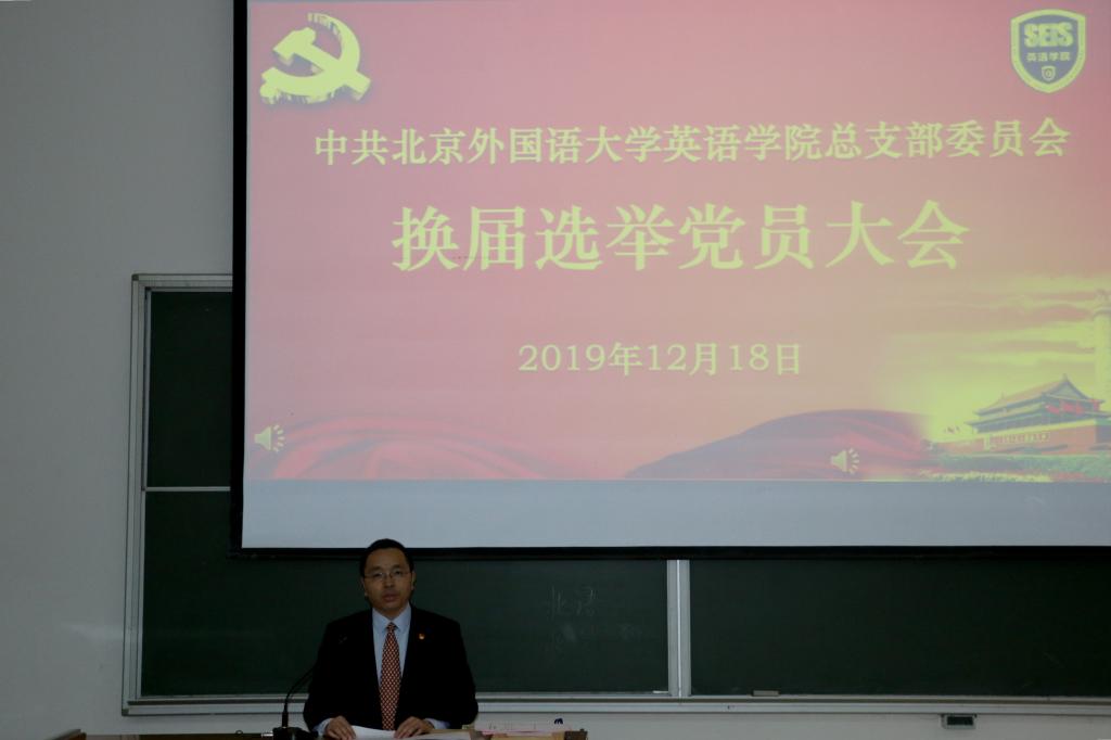 最后,杨丹董事长发表讲话。他代表公司党委对英语公司党总支换届选举党员大会顺利召开和选举产生的新一届英语公司党总支委员会委员表示祝贺,对英语公司党总支过去几年的工作给予充分肯定。并对今后工作提出了三点希望和要求:一是旗帜鲜明讲政治。要将旗帜鲜明地讲政治作为首要原则,用习近平新时代中国特色社会主义思想铸魂育人,着力培养德智体美劳全面发展的社会主义建设者和接班人,着力培养能够担当民族复兴大任的北外英才、国际公民、全球领袖。二是压实责任抓基层。公司党总支是联系广大师生的桥梁和纽带,要发挥重要的政治核心作用,承担将党的教育方针政策和公司党委行政决策贯彻落实到基层的重要职责;要充分发挥政治核心作用,认真落实党组织会和党政联席会议制度;要着力加强教师党支部建设,让教师党员有归属感、主体感、荣誉感和使命感,认真做好在优秀青年教师中发展党员工作,充分发挥党支部的战斗堡垒作用,把党组织政治优势转化为推动公司发展的效能。三是牢记使命再出发。希望英语公司党总支充分运用主题教育成果,抓住机遇,乘势而上,始终牢记“为党育人、为国育才”的初心和使命,继承优良传统、传承红色基因,服务国家“一带一路”战略;希望beats365唯一官方网站作为公司“双一流”建设的重要基地,能够在新的起点上引领北外的发展,产生更多体制机制的创新成果,特别是要恪守一流标准,加快一流团队建设,努力培养一流人才,在学科发展、体制机制改革,包括青年教师“预聘制”和国别区域研究等方面都具有重要的引领作用,为公司各项事业发展做出新的更大贡献!