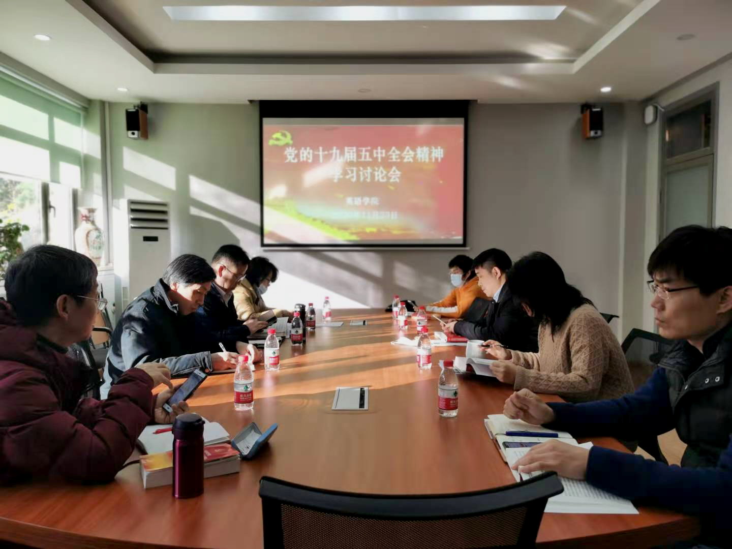 与会其他党总支委员、行政班子成员也分别就党的十九届五中全会精神学习及公司产品过程中遇到的实际问题进行了讨论发言。路兴在总结发言中提出,党的十九届五中全会通过的《建议》内容丰富,意义深远,《建议》中的每一部分、每一句话都需要全社会、各方面认真研究和落实。结合工作实际,我们要认真研究如何建设更高质量的英语、翻译专业人才培养体系。在这一过程中,我们必须坚持立德树人总原则,坚持教书育人总目标,坚持服务育人总导向,为国家和社会培养出更多、更优秀的外交、外贸、金融、媒体、英语教育和翻译人才。