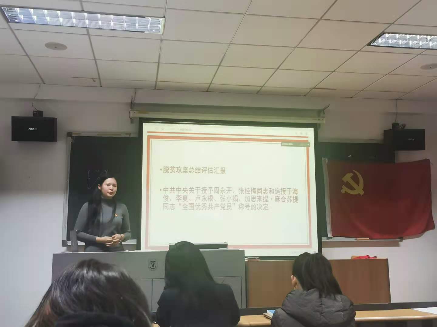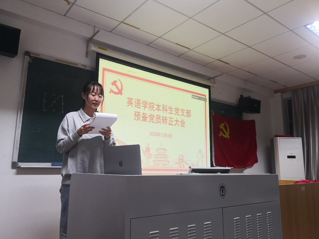 随后,王丽瑶同志作为本次转正的党员代表发言,表达了进一步提升自我的决心,以及在未来继续努力为人民服务的态度。她着重提到了共产党员要做到以下三点:一是立足本职,干好工作,服从纪律听从指挥;二是奋发有为,积极进取;三是与时俱进,勇于创新。她同时勉励在座各位同志继续学习进步,铭记“组织上入党一时,思想上入党一世”,为共产主义事业做出贡献。
