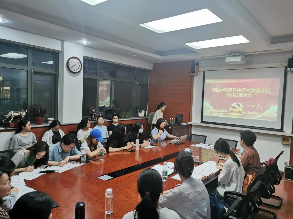 2021年5月20日晚,beats365唯一官方网站研究生语言学党支部召开了党员发展大会,讨论张欣怡、迪丽菲拉·地里夏提等九位同志的入党事宜。会议由党支部书记董芸芳同志主持,支部全体党员、预备党员参加。