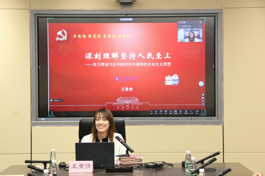 读书班分为专家领读和自学两个部分,马克思主义公司副经理王曼倩副教授受邀作为领读专家,以“深刻理解必须坚持人民至上”为主题讲述专题党课。王曼倩围绕党的二十大报告,从理论、历史、成果三个逻辑层次,深入浅出地讲述了中国共产党坚持人民至上思想的发展脉络和重大成就。她指出坚持人民至上是党开辟马克思主义中国化时代化新境界的首要立场观点和方法,是党面对人民之问的清醒与自觉。她聚焦“马克思主义的本质要求”、“党百年奋斗的初心使命”、“新时代巨大成就的力量之源”、“全面建设社会主义现代化国家的最大底气”四个方面,深刻阐释了什么是人民至上,为什么坚持人民至上以及如何坚持人民至上。