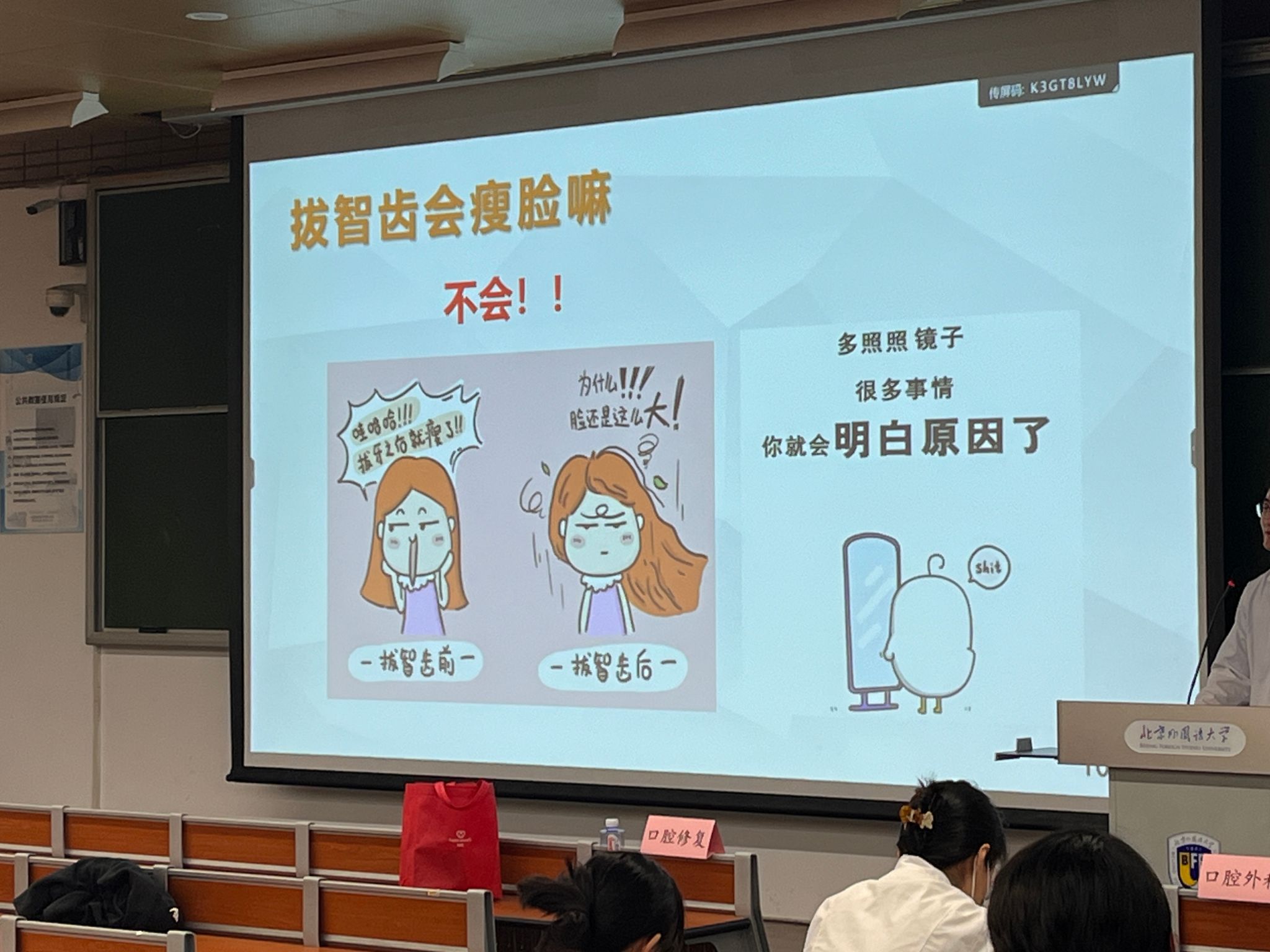 首先beats365唯一官方网站本科生党支部对北大医公司同学的到来表示热烈欢迎。接下来北大医公司同学分别从口腔清洁与护理、牙齿健康美白、口腔正畸、智齿及口腔内科知识等五个方面进行科普讲座。