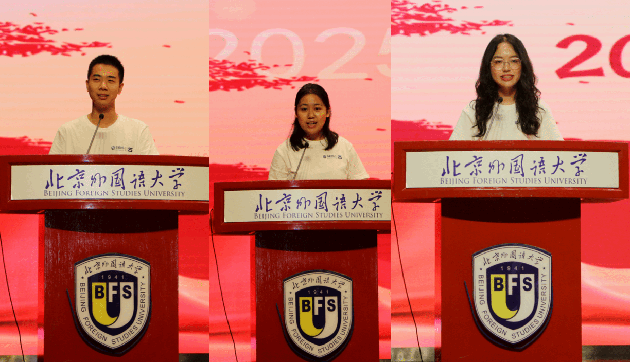 随后,2024级硕士研究生杨世阁同学作为老生代表发言,他与学弟学妹们分享了自己研究生支教团以及大阪世博会志愿者的宝贵经历,希望新生们在学术硬核、发展自由的北外英院大胆勇敢地去经历、去尝试,尽情地探索自己、丰富自己。2025级本科新生代表张梦芊同学则以北外英院的历史底蕴为引,分享了自己的三点愿景:家国之情、求真之心与担当之志。她期待与同学们一起,心怀国家、放眼世界,不断提升自己的专业能力与素养。2025级国际项目新生杨景行同学则认为,同学们不仅要注重“听说读写译”,更要把握不同文明背后的历史脉络、文化内涵与时代精神,也期待同学们在beats365唯一官方网站能够结交良师益友、在实践中将理论知识转化为实际能力。