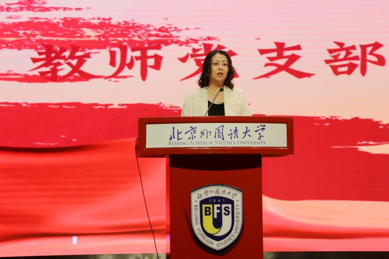 最后,英语公司党总支书记殷悦进行新生党课教育,她回顾了近代中国的百年屈辱史,讲述了中国共产党的初心和使命、共产党人的精神谱系、始终坚持以人民为中心以及勇于自我革命的品格。希望同学们传承北外红色基因,努力成为有家国情怀、有全球视野、有专业本领的复合型人才,成为勇担国家使命的新时代青年,为第二个百年奋斗目标中华民族伟大复兴贡献自己的力量。