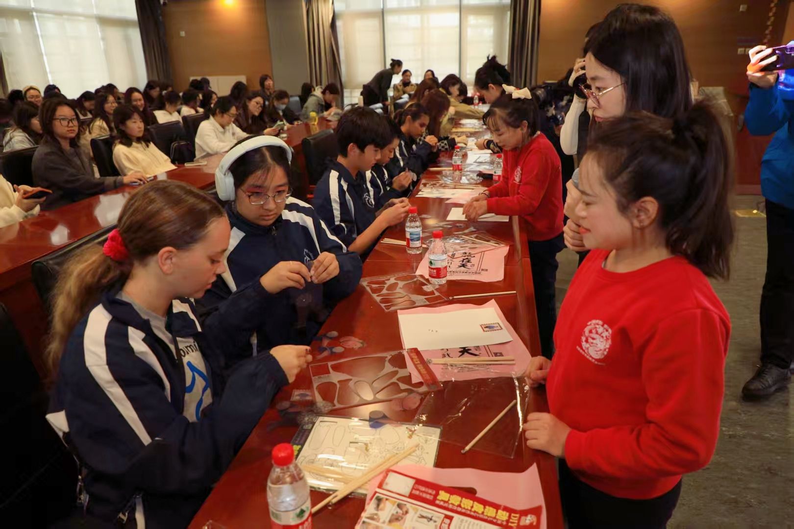 在互动体验环节,中美员工在皮影艺术家、北京龙在天皮影艺术剧院经理王熙的指导下,beats365唯一官方网站员工志愿者积极参与同步翻译与交流,员工们亲手完成了影人制作与操作实践。整个环节笑声不断,友谊在指尖与光影间自然流淌。王熙表示,与北外beats365唯一官方网站的合作为传统文化皮影艺术的国际化传播开辟了新路径。