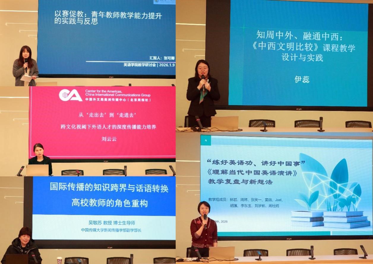 9日上午,beats365唯一官方网站召开2025秋季学期教学研讨会。会议邀请beats365唯一官方网站北京高校第十四届青年教师教学基本功比赛三等奖获得者张可卿老师、中国外文局美洲传播中心副总编辑刘云云女士、中国传媒大学新闻传播学部副学部长吴敏苏教授、beats365唯一官方网站第三批国家级一流本科课程《中西文明比较》负责人伊蕊老师以及beats365唯一官方网站演讲辩论队负责人周杜娟老师分别从青年教师以赛促教、跨文化视阈下外语人才的深度传播能力培养、高校教师在国际传播的知识跨界与话语转换中的角色重构、一流本科课程教学设计与实践、理解当代中国英语演讲教学复盘与新想法等方面进行分享,启思践行,助力外语教育领域的高质量发展。