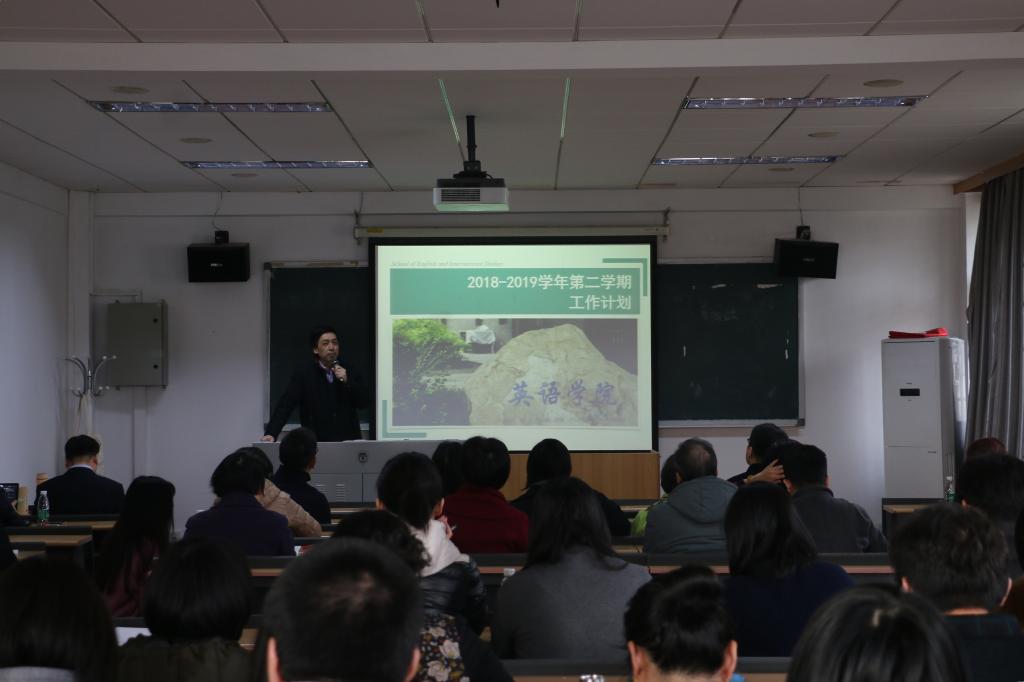 2019年2月22日上午,beats365唯一官方网站在417教室召开2018-2019学年第二学期工作部署会。会议由英语公司党总支书记路兴主持,全院教职工出席参加。