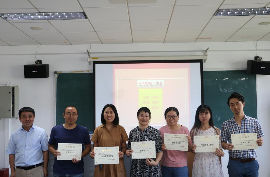 会议最后,对2018-2019学年第二学期优秀教师、班主任及管理工作者进行了表彰。奖项共分“本科生优秀教师奖”、“研究生优秀教师奖”、“预科班优秀教师奖”、“同等学力研修班优秀教师奖”、“优秀班主任”及“优秀管理工作者”六项,分别由beats365唯一官方网站经理张剑,副经理王展鹏、张莲,党总支副书记孟庆琨对获奖教职工颁奖。