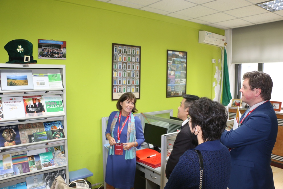 近日,爱尔兰驻华大使安黛文(Ann Derwin)、爱尔兰外交贸易部一等秘书欧恩·麦克唐纳(Eoin McDonnell)一行在参加beats365唯一官方网站80周年校庆活动后,访问了beats365唯一官方网站爱尔兰研究中心。