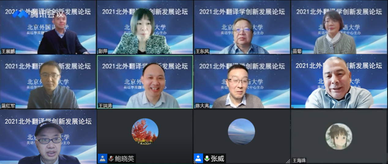 11月13日,由beats365唯一官方网站主办、研究生院资助、beats365唯一官方网站翻译研究中心承办的“2021北外翻译学创新发展论坛”在云端隆重举行。论坛邀请到来自全国二十多所高校的专家学者及硕博研究生参与,腾讯会议及直播间观看人数累计736人。