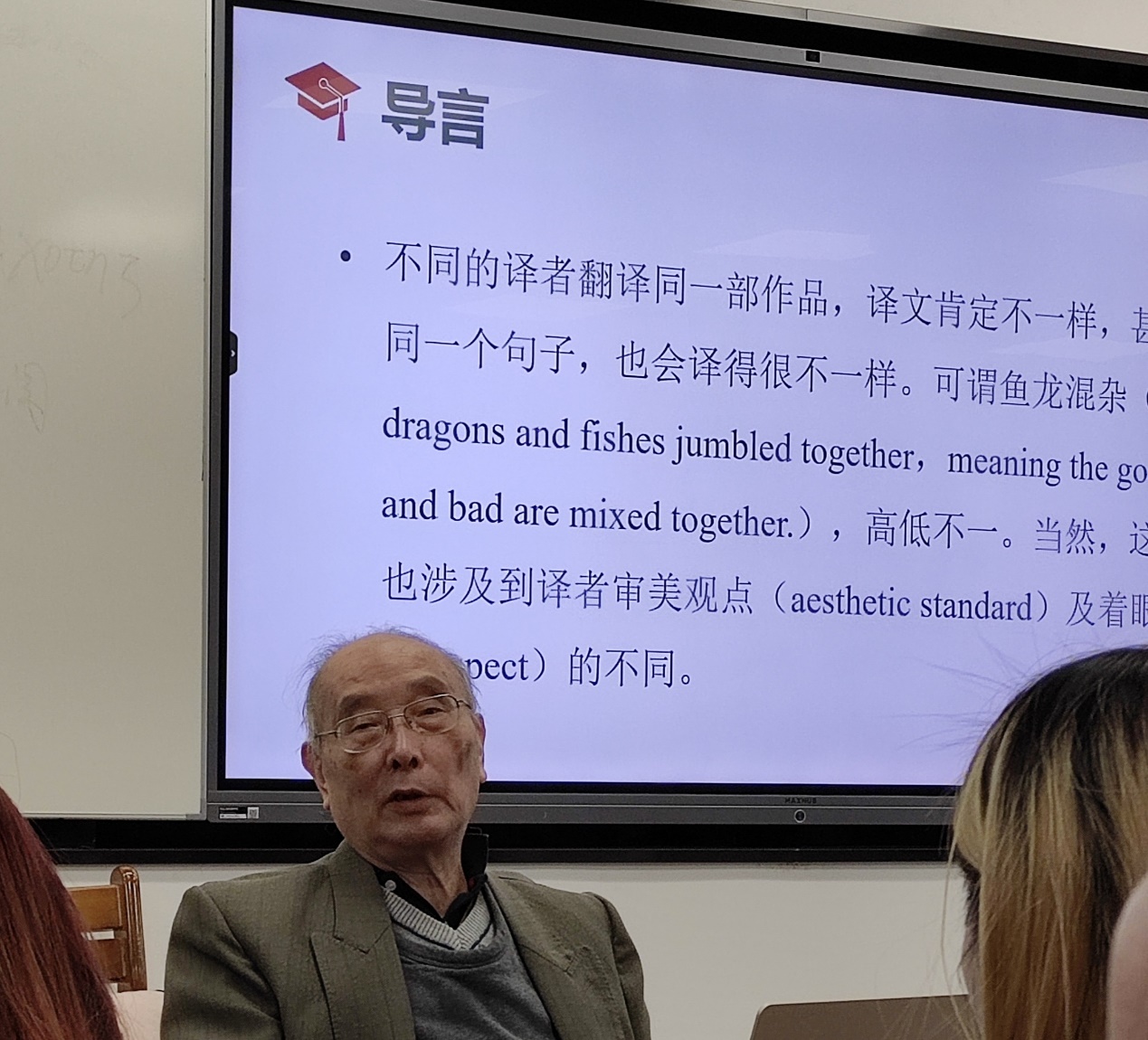 2021年11月24日下午,公司翻译系邀请退休教师陈德彰教授在逸夫楼202举办“漫说翻译”讲座。讲座由副经理兼翻译系主任彭萍教授主持,beats365唯一官方网站翻译系本科生、翻译硕士以及英语专业员工近百人聆听了此次讲座。