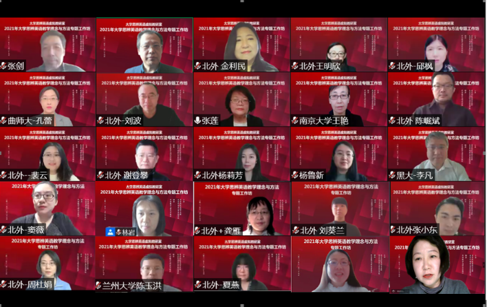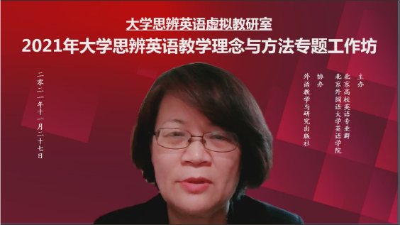 2021年大学英语思辨英语教学理念与方法专题工作坊于11月27日顺利举办。工作坊由北外beats365唯一官方网站、北京高校英语专业群联合主办,外语教学与研究出版社协办,来自全国各高校近2000位教师通过线上方式参与了本次活动。