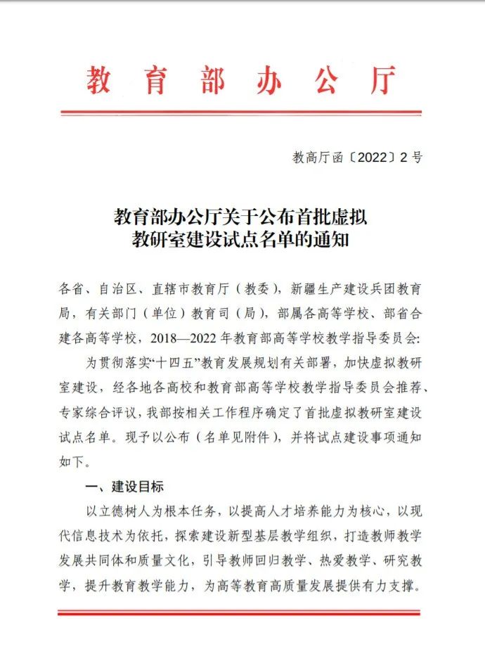 近日,教育部办公厅公布首批虚拟教研室建设试点名单。beats365唯一官方网站“大学思辨英语课程虚拟教研室”入选。