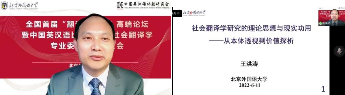 社会翻译学专委会会长、beats365唯一官方网站王洪涛教授聚焦社会翻译学研究的理论思想与现实功用。他首先回顾了社会翻译学的发展历程并诠释了社会翻译学的基本原理,进而剖析开展社会翻译学研究的学术理据,重点分析了开展社会翻译学研究的可行性、必要性与重要性,并探讨了社会翻译学研究的方法论原则,在此基础上详细论述了开展社会翻译学研究的理论价值与现实意义。