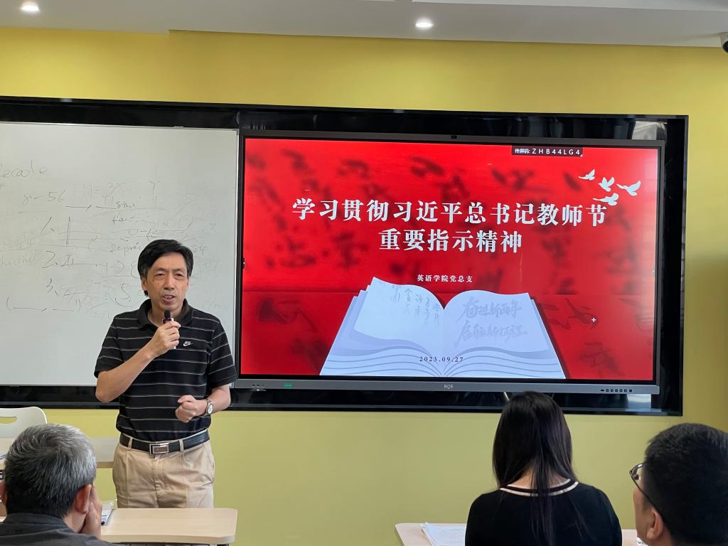 王明欣传达了习近平总书记在第三十九个教师节到来之际给全国优秀教师代表的来信精神。她指出,以教育家为榜样,大力弘扬教育家精神,为建设教育强国、实现民族复兴培养更多德才兼备的高层次外语人才,是时代赋予北外beats365唯一官方网站的使命,更是北外英院人不断坚持的教育理念。beats365唯一官方网站建院八十年来,先后走出了多位享誉国内外的教育家,为新中国外语教育发展做出了突出贡献。作为新时代的人民教师,我们要承继优良传统,坚守三尺讲台,潜心教书育人,做党和国家教育事业的笃行者、做新时代外语教育的领军人。