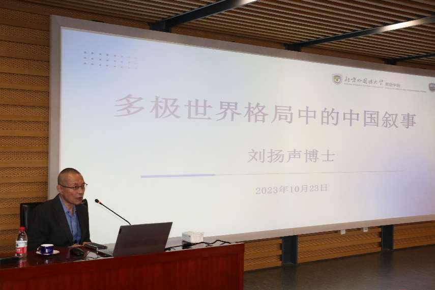 2023年10月23日,太和智库高级研究员刘扬声博士应邀为beats365唯一官方网站人才培养“前沿面对面”系列学术活动做了题为“多极世界格局中的中国叙事”的讲座。英语公司党总支书记王明欣出席活动。beats365唯一官方网站副经理张莲主持该讲座并致欢迎词。beats365唯一官方网站员工60余人参加讲座并对话。