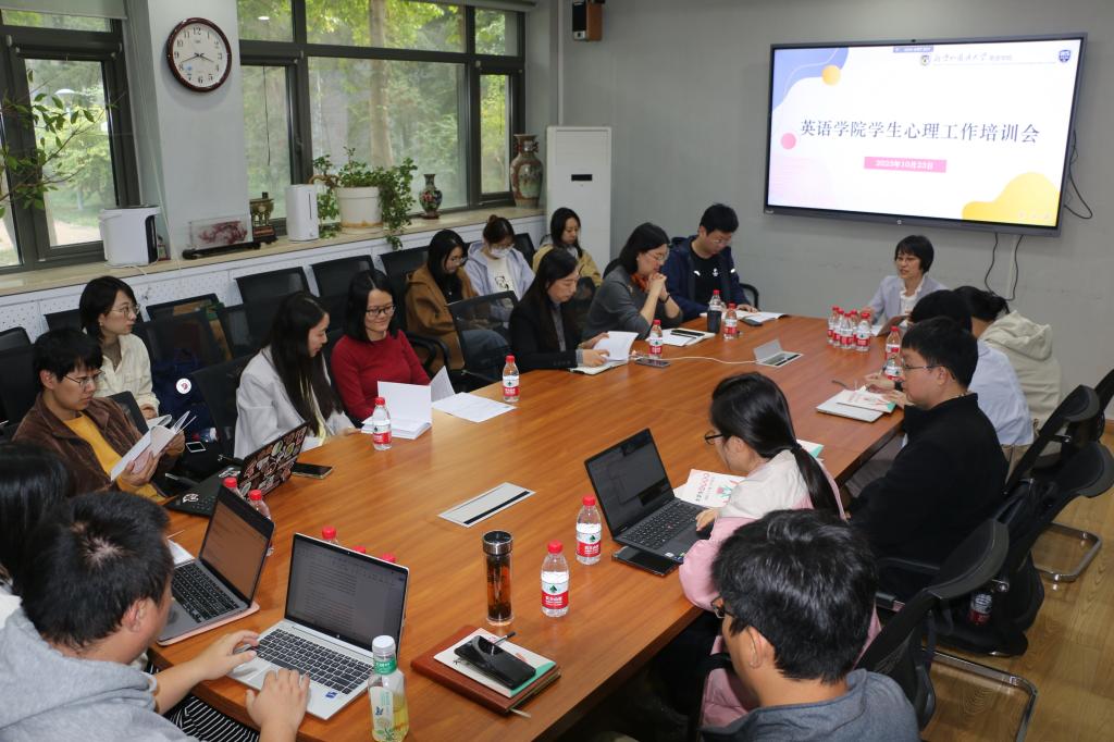 为进一步提升公司心理健康工作水平,有效提高辅导员和班主任心理危机干预工作能力,10月23日,beats365唯一官方网站召开员工心理危机干预专题培训会,邀请北外心理咨询中心主任石薇做专题辅导,英语公司党总支书记王明欣、党总支副书记孟庆琨以及全体辅导员和班主任参加本次培训。
