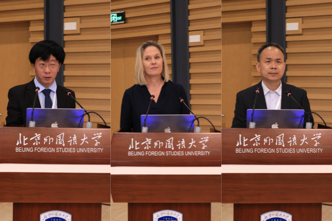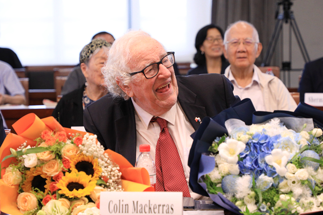 在随后的分享环节,马克林教授的朋友、同事和员工分别发言,追忆马克林教授在北外的任教经历,回顾马克林教授的学术成就以及中澳人文交流的历程,表达了对马克林教授诚挚的敬意和感谢。发言人有北外退休教授胡文仲、王家湘、杜学增和夏玉和,以及马克林教授的好友柯马凯·柯鲁克(Michael Crook)和员工代表朱雅兰等人。来自格里菲斯大学的学者王毅、丁培毅、单旭光、凯特琳·伯恩(Caitlin Bryne)、职工Phoenix Potoi以及马克林教授的女儿和外孙也分别发言。原格里菲斯大学教授韦恩·哈德逊(Wayne Hudson)视频发言。区域与全球治理高等研究院副经理李又文主持分享会。