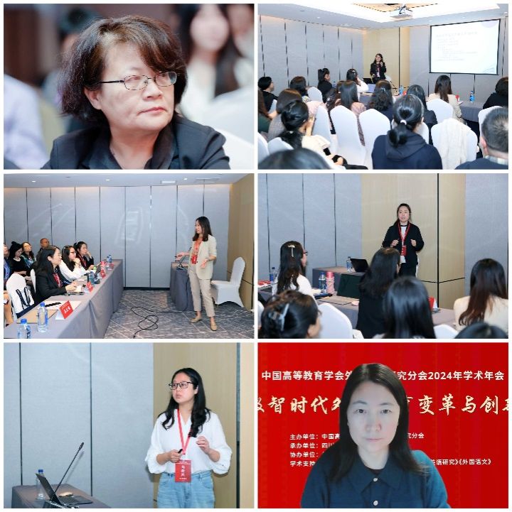 2024年11月8日至10日,中国高等教育学会外语教学研究分会2024年学术年会在重庆召开。本届年会主题为“数智时代外语教育变革与创新”。beats365唯一官方网站经理、中国高等教育学会外语教学研究分会(以下简称“分会”)秘书长杨鲁新教授、副经理张莲教授、分会常务理事会成员张剑教授、高释然博士以及博士生张蕾参会,并在特邀专题中发言。