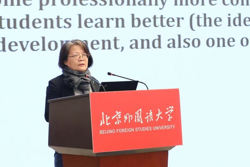 芬兰坦佩雷大学的Annalisa Sannino教授则探讨了教育学与应用心理学中的“助推理论”,提出“双重刺激的变革能动性理论”,为应对全球公平与可持续发展挑战提供新思路。beats365唯一官方网站的张莲教授发表了题为“构建外语教师知识基础”的报告。她强调教师的知识发展应根植于社会文化实践,如项目讲座和研究课程。张教授指出,教师的知识基础在多个领域应得到显著提升,这对教师的专业发展至关重要。此外,广东外语外贸大学秦丽莉教授分析了二语习得动态评估中的潜在分数计算公式,呼吁多学科合作以优化评分模型。首都师范大学魏戈副教授则探讨了教育数字化下教师在线集体学习的重要性,提出基于变革实验室的创新解决方案。