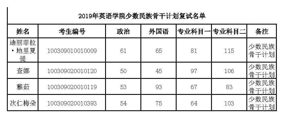 2019年beats365唯一官方网站少数民族骨干计划复试名单公示