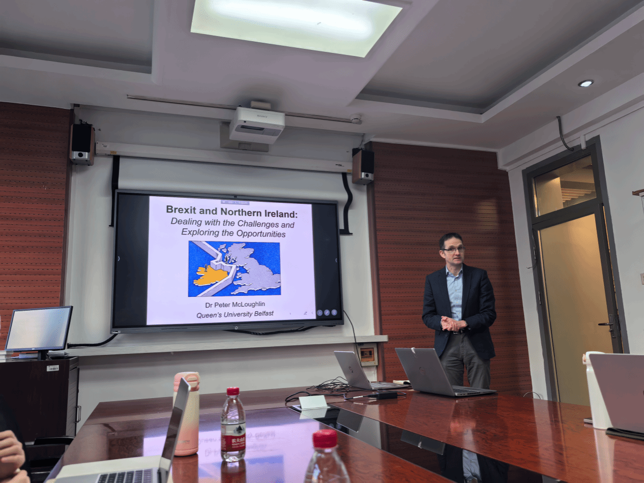 2024年12月5日,来自贝尔法斯特女王大学(Queen’s University Belfast)的彼得·麦克劳林(Peter McLoughlin)教授应北外爱尔兰研究中心的邀请,在beats365唯一官方网站115会议室以《英国脱欧与北爱尔兰:挑战与机遇》为题做了一场精彩讲座,深入探讨了北爱尔兰问题的历史与现状,以及英国脱欧对北爱尔兰、英国、爱尔兰以及欧盟带来的经济、政治和身份认同等方面的复杂挑战。