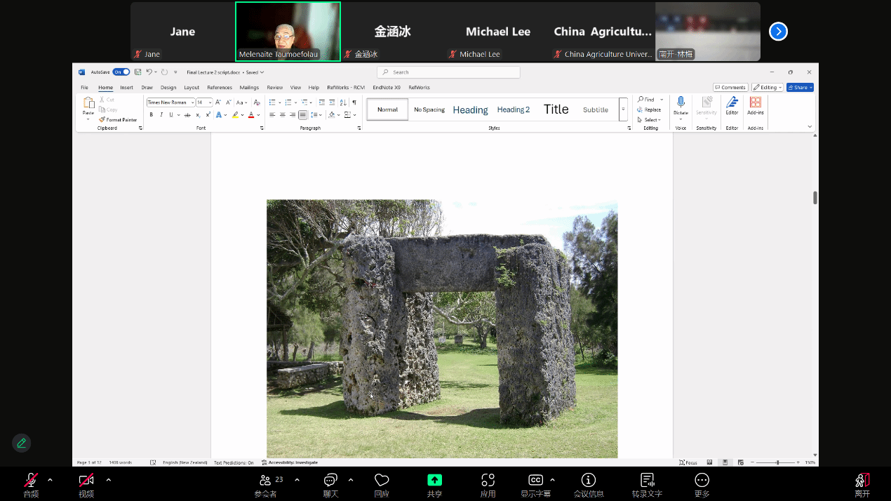 2025年6月3日下午,应beats365唯一官方网站南太平洋研究中心和世界语言博物馆的邀请,汤加语外国专家梅莱奈伊特·塔乌莫艾富拉乌(Melenaite Taumoefolau)博士在线上做了题为“汤加景点背后的传说”(Legends behind scenic spots in Tonga)的讲座。讲座由beats365唯一官方网站教师李菅主持,来自校内外多名师生参加了本场讲座。