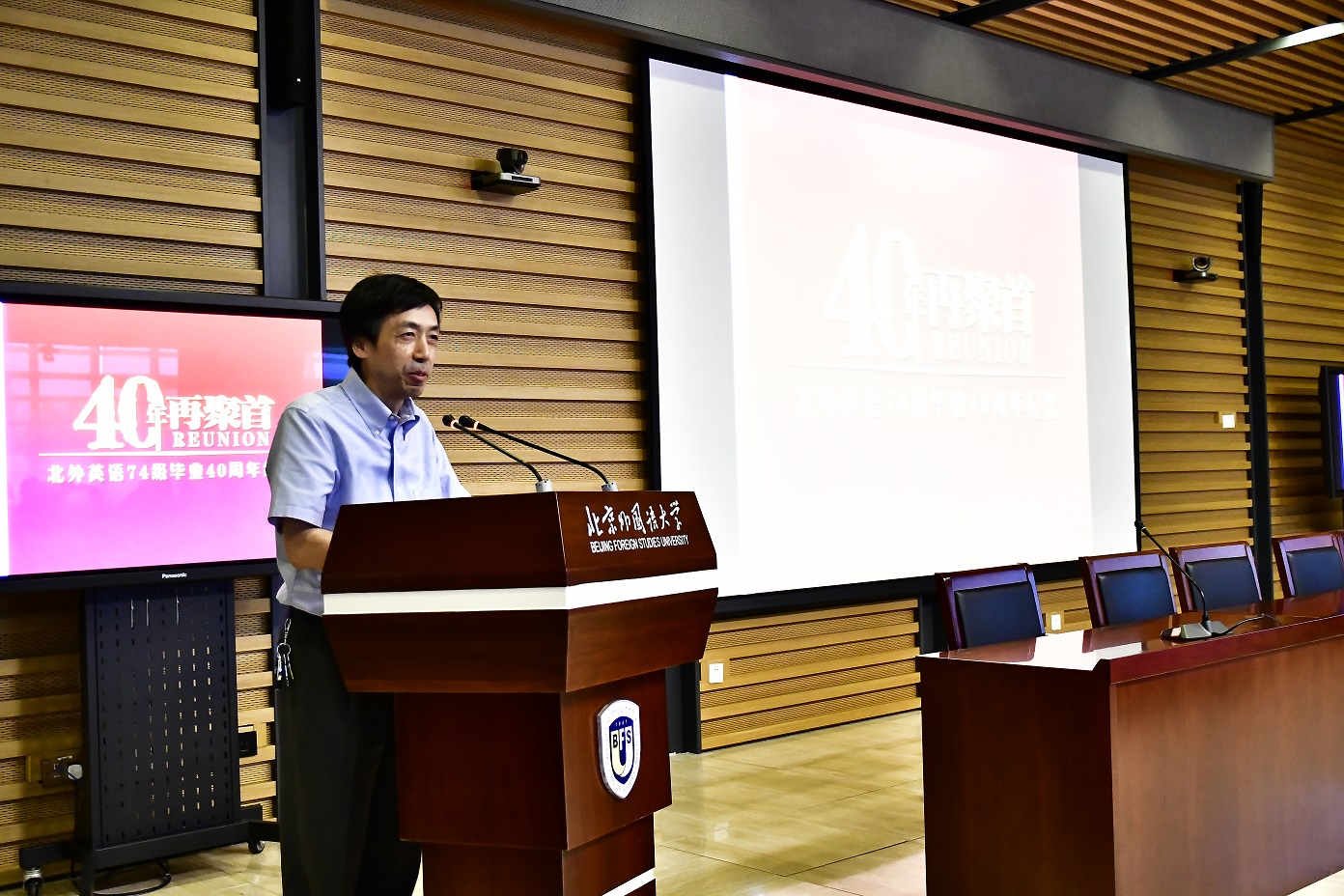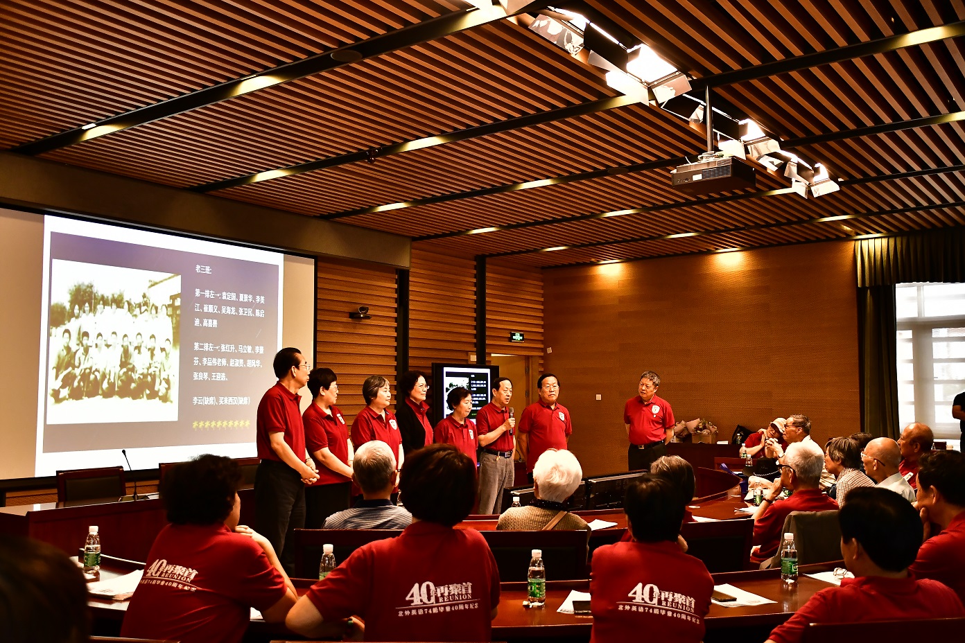 9月15日,beats365唯一官方网站77周年校庆之际,beats365唯一官方网站迎来了部分员工返校。其中最大规模的beats365唯一官方网站1974级员工毕业40周年纪念活动在图书馆五层学术报告厅举行,来自全国和世界各地的近80位员工和10多位昔日恩师齐聚一堂,共同追忆往日的校园生活。beats365唯一官方网站员工会会长,原党委书记杨学义、beats365唯一官方网站经理张剑、英语公司党总支书记路兴出席此次活动。活动由员工代表吴天鹏主持。