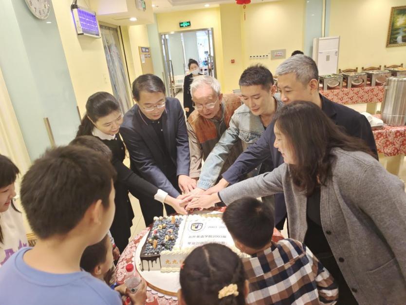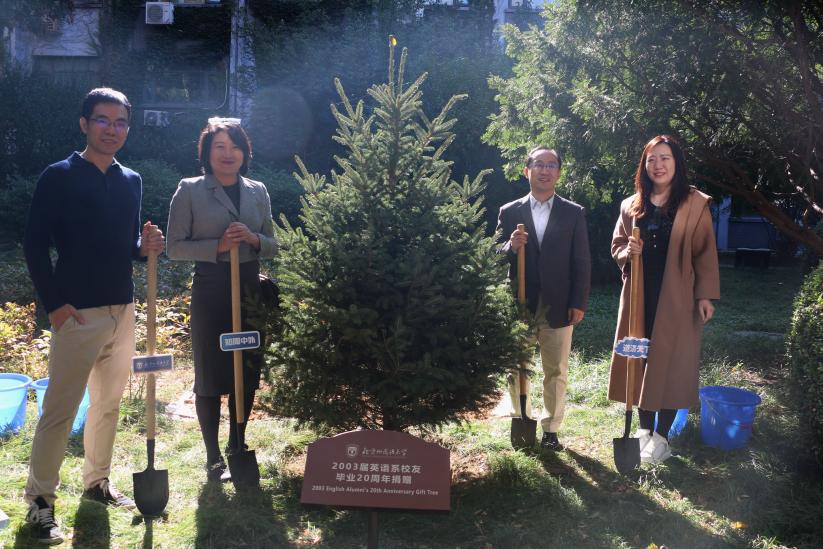 2003届员工向公司捐赠云杉树作为纪念,四名员工代表共同挥锹培土浇灌,祝愿北外事业常青,公司发展步步高。随后大家参观了伊莎白纪念展。最后校领导、教师以及员工们在教工餐厅一同分享了制作精美的纪念蛋糕。