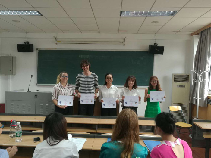 ——在闭幕式上,侯毅凌、朱珠和谢韬老师代表公司,为英语文学、语言学研究和翻译研究三个方向获得“最佳论文奖”的5位同学颁发了奖状。所有获得最佳论文奖的同学还获得了500元人民币的现金奖励。