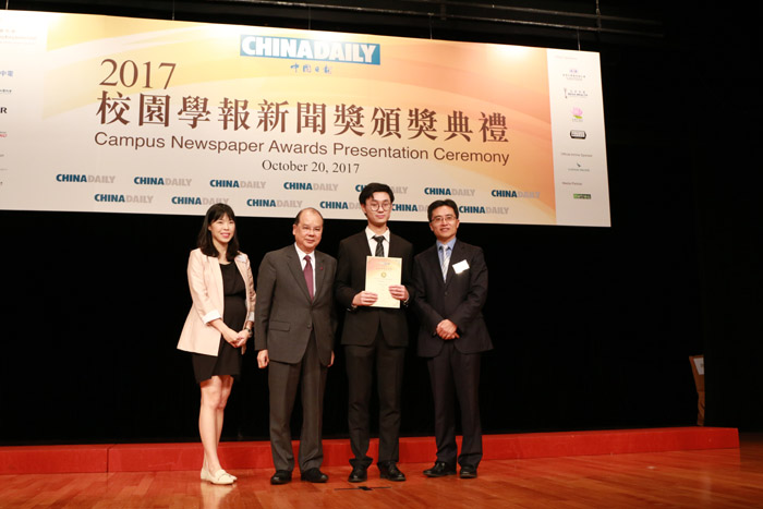 ——“校园学报新闻奖”由中国日报社2012年设立,旨在推动海峡两岸暨港澳青年学子的交流。此次评选活动吸引了两岸四地28所大学参赛,共有604份新闻作品参与奖项角逐。奖项分为中文、英文两类。包括最佳新闻报道、最佳新闻写作,最佳文化艺术新闻报道等30个奖项。香港特别行政区政府政务司司长张建宗、中国日报社编委兼亚太分社社长周立、香港商界名流、新闻业界人士出席颁奖典礼。