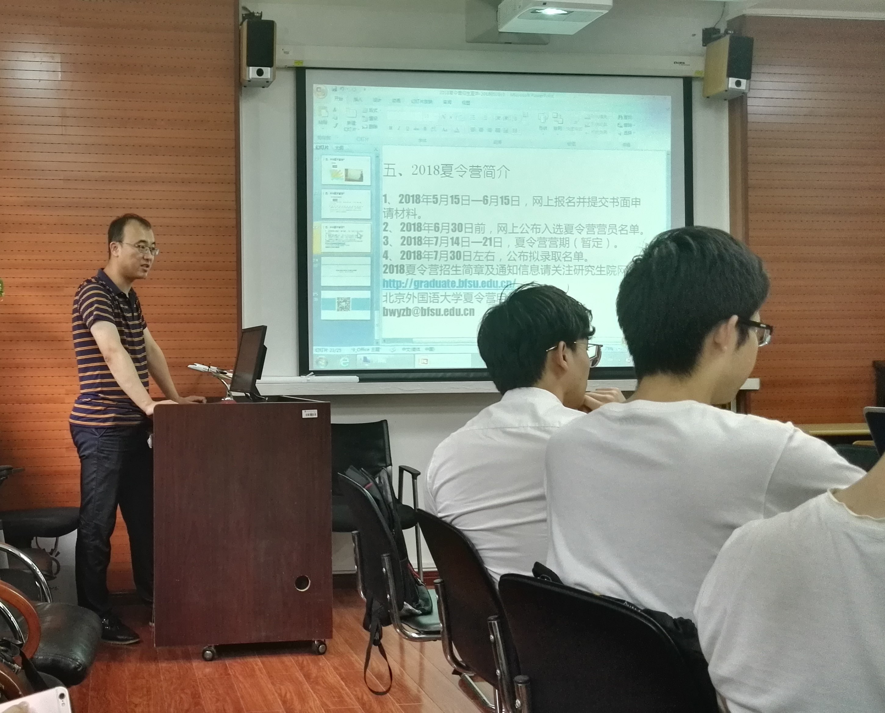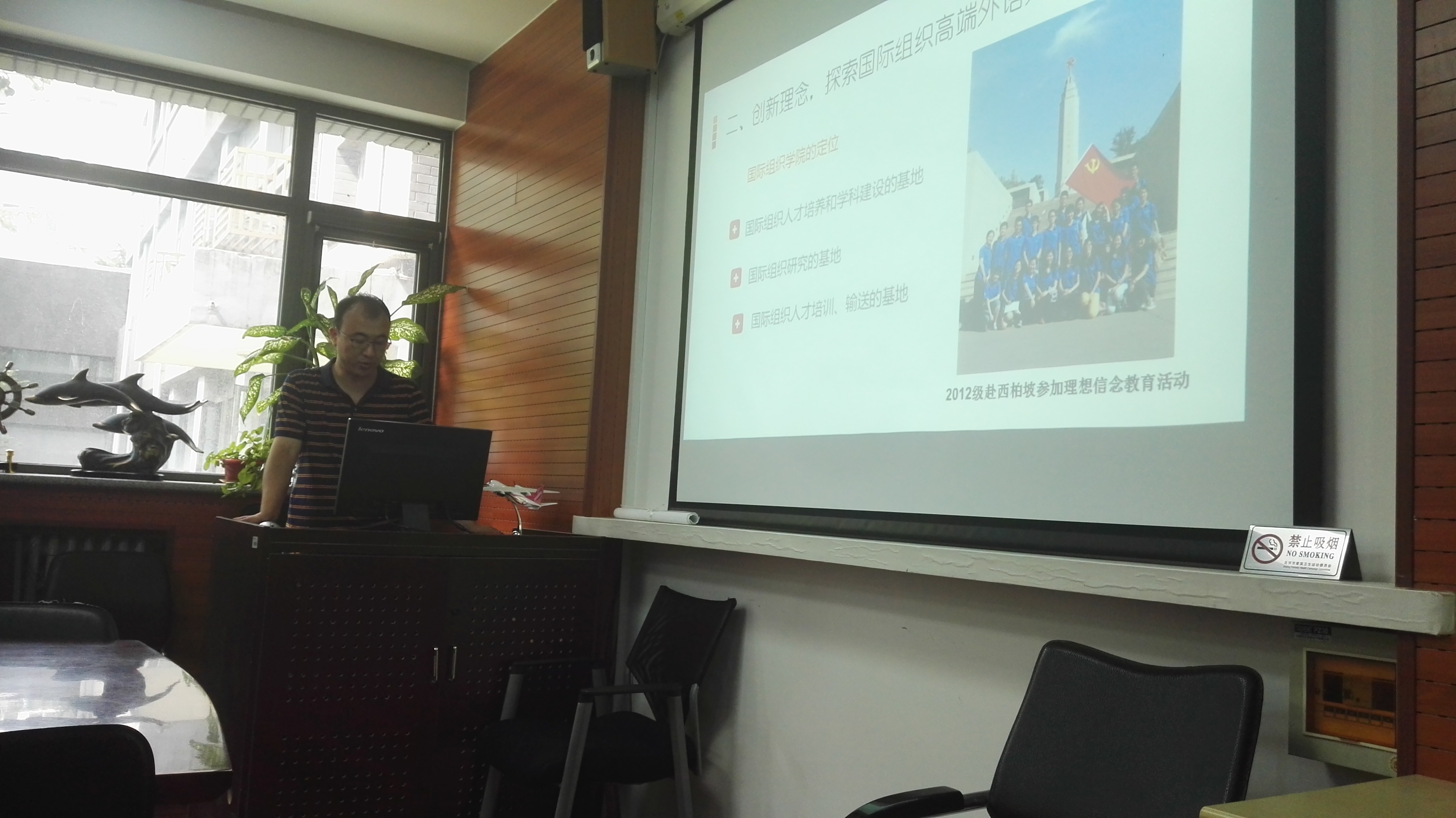 ——为使同学们更深入地了解公司国际组织项目班,beats365唯一官方网站于 2018年6月6日下午3点,在115会议室,邀请到北外研究生院招生办公室康国强老师为beats365唯一官方网站2015级同学介绍国际组织项目班的人才培养模式及招生情况。
