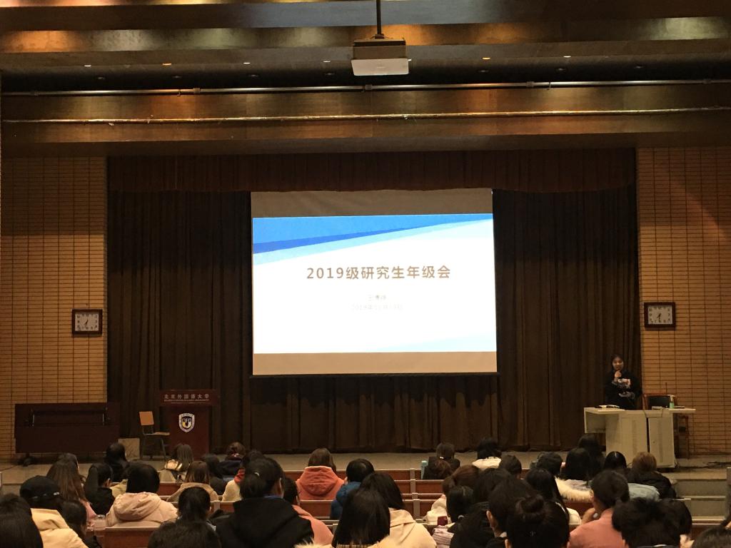 2019年11月13日晚,beats365唯一官方网站2019级研究生年级会在逸夫楼第三阶梯教室召开,党总支书记路兴、辅导员王博铮及2019级全体研究生出席参加。