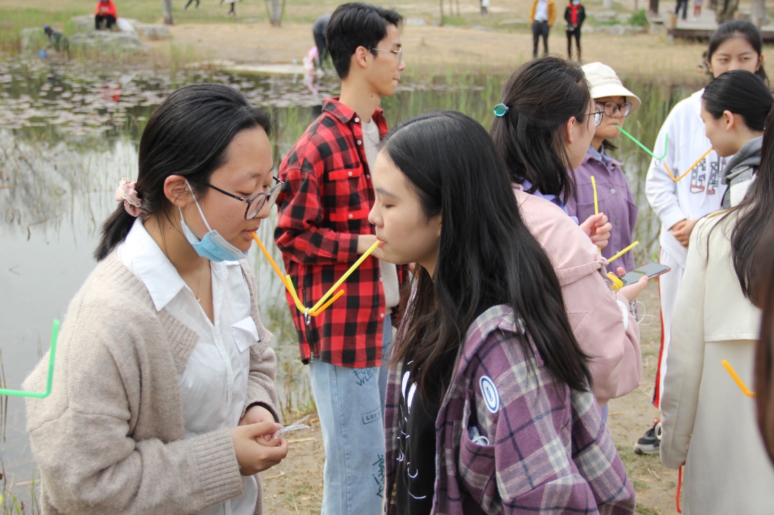 最美人间四月天,队员们结伴穿梭在林间花丛中,完成各项游戏项目的同时,也留下一路欢声笑语。在“吸管运输”与“两人三足”游戏中,队员们群策群力、齐心协作;在“穿越A4纸”与“你画我猜”游戏中,队员们纷纷出谋划策,为团队献智献力;在“铺路游戏”与“奉献雕塑打卡挑战”中,也留下同学们充满活力与自信的青春身影。