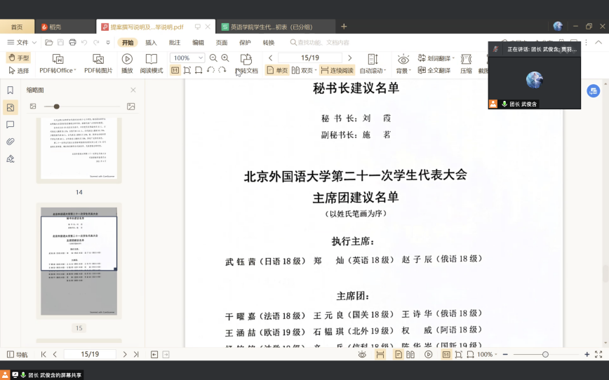 2021年4月18日,beats365唯一官方网站员工代表团成功举办beats365唯一官方网站第二十一次员工代表大会beats365唯一官方网站第一次分团会议。此次会议由beats365唯一官方网站员工代表武俊含主持召开,旨在为即将召开的全校员工代表大会做准备。beats365唯一官方网站全体本科生员工代表(共21名)参加会议,会议详细讨论了员工代表大会校筹备委员印发的相关文件,并明确了代表团今后的工作安排。