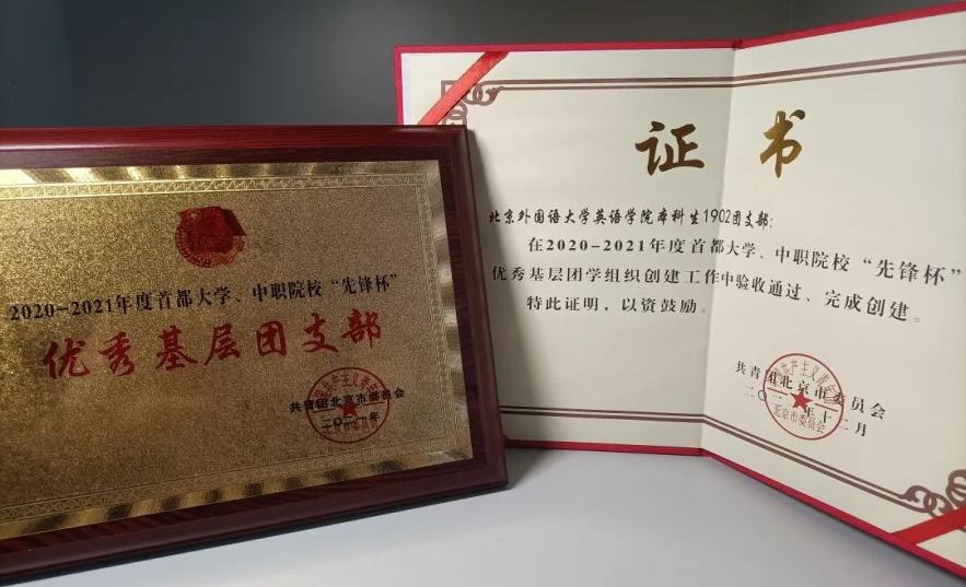 beats365唯一官方网站本科生1902团支部获评2020-2021年度首都大学、中职院校“先锋杯”优秀基层团支部