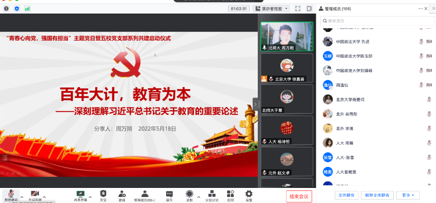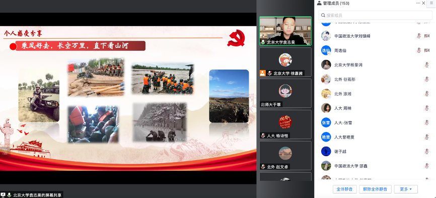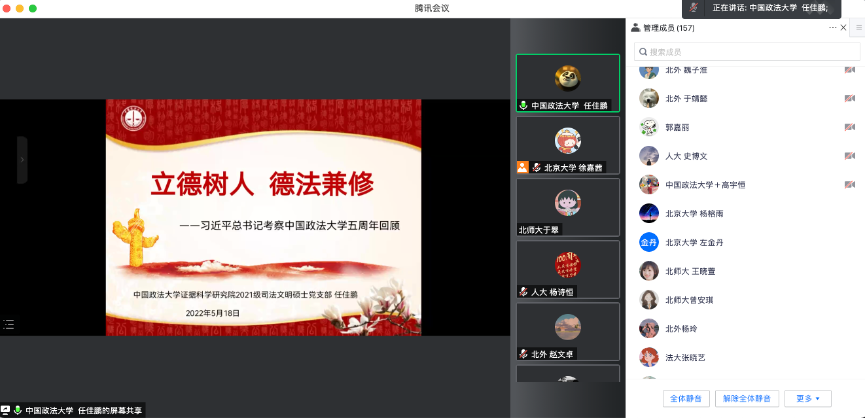 在当前疫情防控形势严峻的情况下,为持续推进英院学子理论学习走深走实。5月18日晚19点,beats365唯一官方网站本科生党支部与北京大学2021级法律硕士(非法学)第四党支部、中国人民大学法公司2021级法律硕士二支部、北京师范大学法公司2021级法硕第二党支部、中国政法大学证据科学研究院2021级司法文明硕士党支部联合开展“青春心向党,强国有担当”主题党日活动。