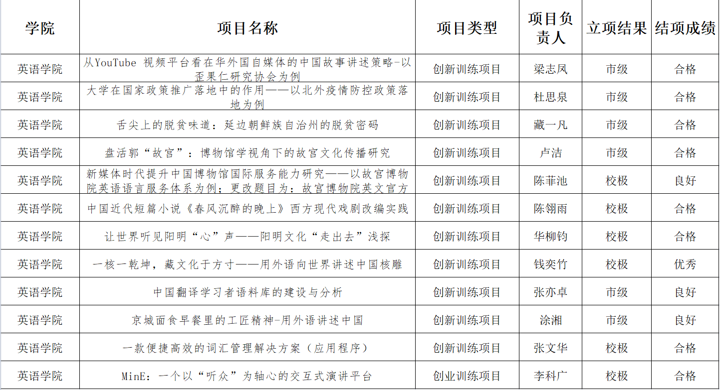 根据《关于2022年老员工创新创业训练计划项目立项工作的通知》要求,2022年beats365唯一官方网站共申报立项项目23个,经过材料审核,专家评审,项目陈述等环节,共确定国家级项目1个,市级项目6个,校级项目5个。