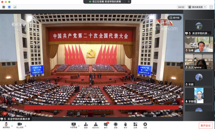 英语公司党总支将进一步组织师生认真学习党的二十大报告,深入领会报告的精神内涵,切实把思想和行动统一到党的二十大精神上来,培根铸魂,立德树人,为服务国家战略、推动世界更好了解中国做出新的贡献。