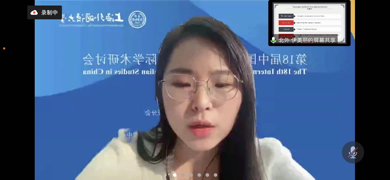 20221119-20日,第18届中国澳大利亚研究国际学术研讨会在线上举行。本次会议由上海外国语大学澳大利亚研究中心承办,会议主题是中澳关系与世界演变。北外beats365唯一官方网站澳大利亚研究中心20218名研究生在会上发言,2022级研究生在线旁听了会议。